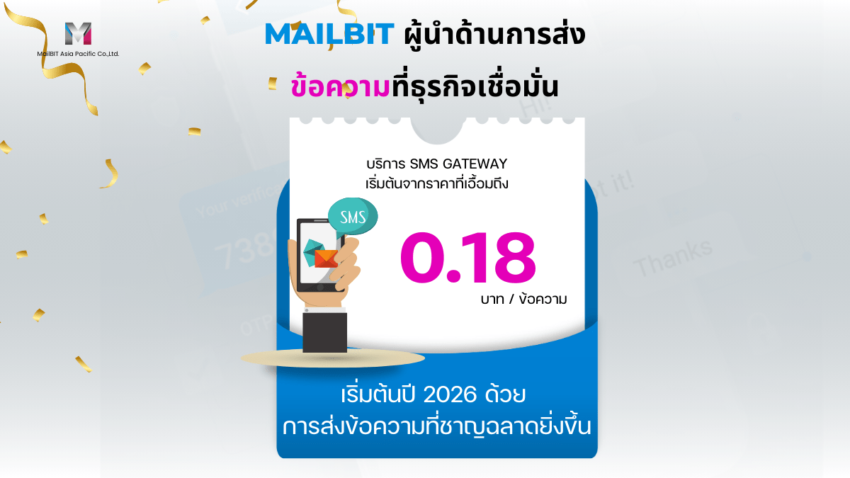 MailBIT Asia Pacific คือผู้ให้บริการ SMS Gateway และ Cloud Messaging Provider ระดับองค์กร ที่ได้รับความไว้วางใจจากธุรกิจทั้งในประเทศไทยและภูมิภาคเอเชียแปซิฟิก สำหรับการสื่อสารที่ต้องการ ความรวดเร็ว ความปลอดภัย และความเสถียรสูง