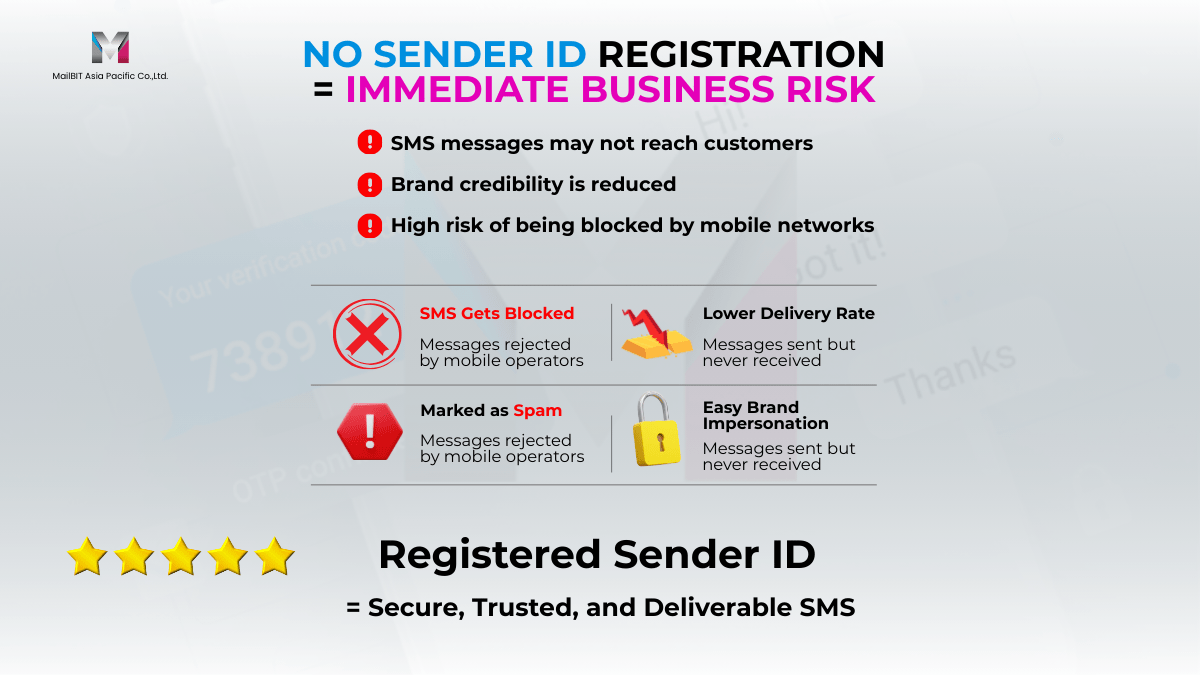 Failing to register your Sender ID can result in blocked messages, reduced delivery rates, legal risks, and serious damage to brand credibility.