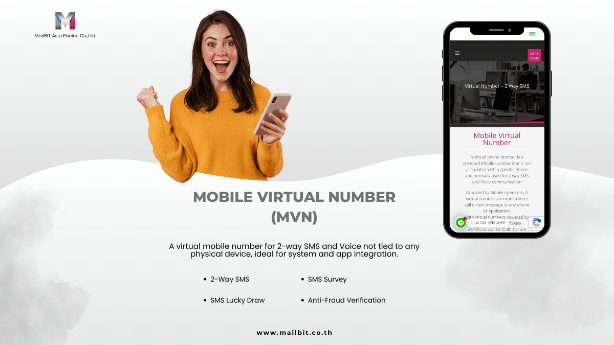#MailBIT #VirtualNumber #2WaySMS #SMSMarketing #MobileMarketing #SMSAPI #AntiFraud #CustomerEngagement #BulkSMS #SMSPlatform #ThailandBusiness